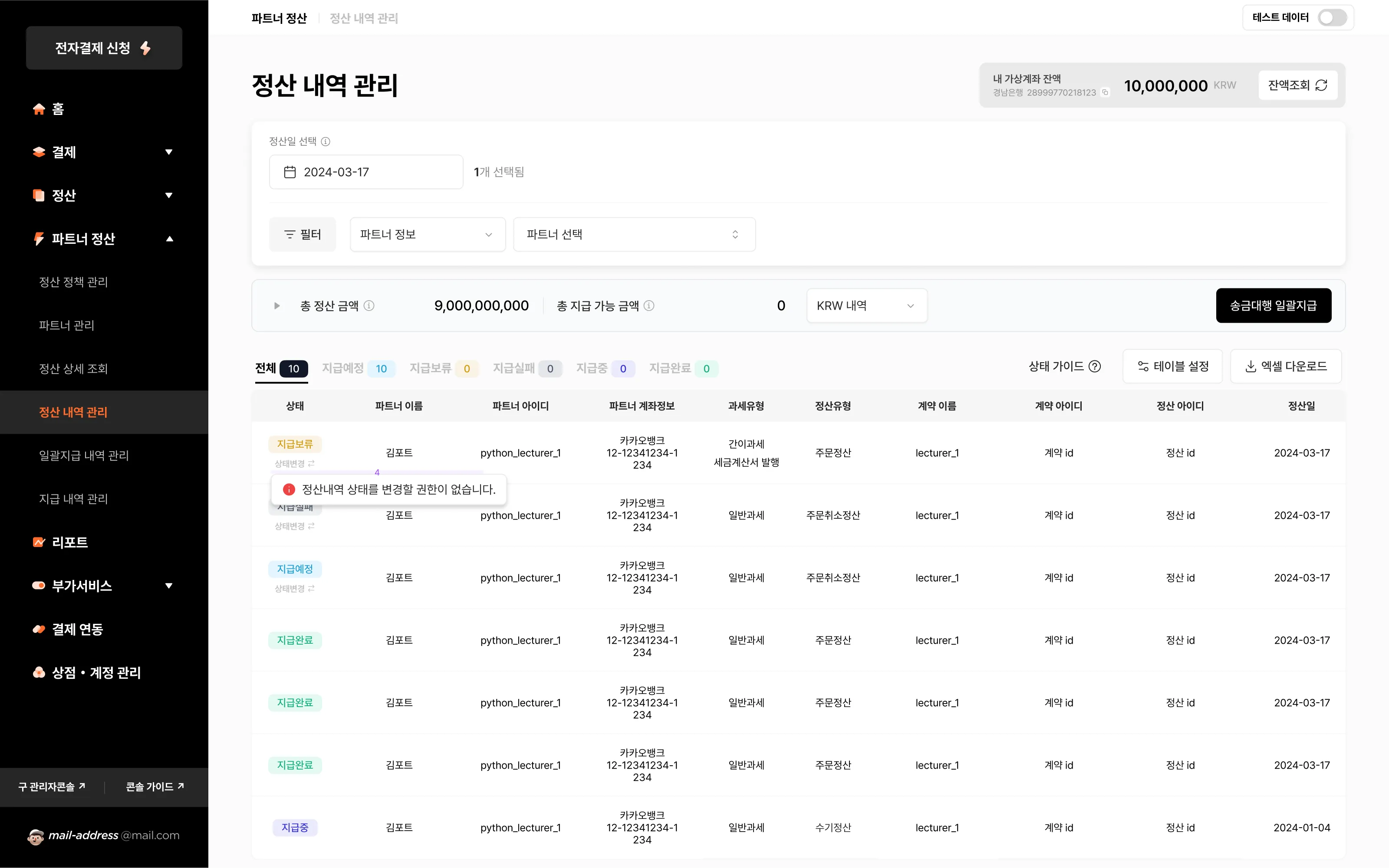 안녕하세요. 파트너 정산 자동화팀입니다.